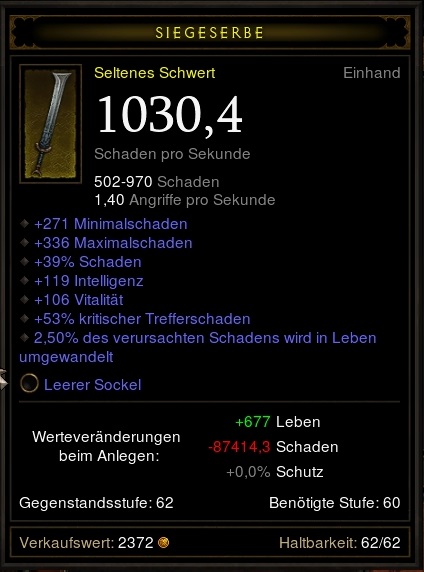 Hab übrigens noch meine WKL mit CD und die Schallende Wut mit LL zu verkaufen falls jemand interesse hat, Schallende Wut hatte 1114 DPS, ~160Dex , Sockel und 2,8% LL und WKL müsste ca.900Dps, Sockel, 64CD und 6%/23%.
