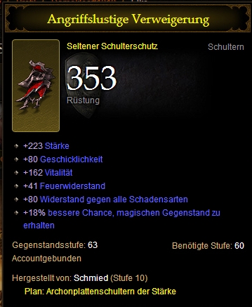 Für Stärke-Schultern hätten sie mir persönlich zu wenig Stärke, auch wenn der Rest schon nett ist. Aber ich persönlich würde weiter craften bis was mit mind. 280 Stärke rauskommt.