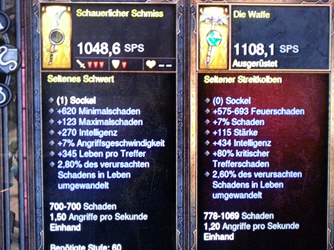 Jungs habe eine wichtige Frage an euch , hoffe ihr könnt mir helfen. Habe eine neue Waffe gefunden, den Kolben ( siehe Bild ) wenn ich die ohne Stein vergleiche macht der Kolben 2000 Schaden mehr. Habe mit diesen nun einen Run gemacht und ich habe deutlich weniger Mana Probleme , es spielt sich also auf dem Papier besser. Benutze Bären + Feuerfledermäuse . IAS soll aber besser für die Mäuse sein. Welche würde ihr mir empfehlen ? Den Kolben oder ? ( Bitte beachten die 80 % CD sind dort nur zu sehen wegen den Stein ! Beide Waffen haben kein CD drauf )
