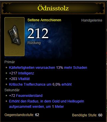 Du musst auf Cold DMG ( Kältefertigkeiten ) Boni gehen, da es Boni für Arkane Kugel nur begrenzt gibt, und am besten dir diese Waffe dazu farmen, dann geht die Frost Orb Sorc ab wie Schmids Katze !