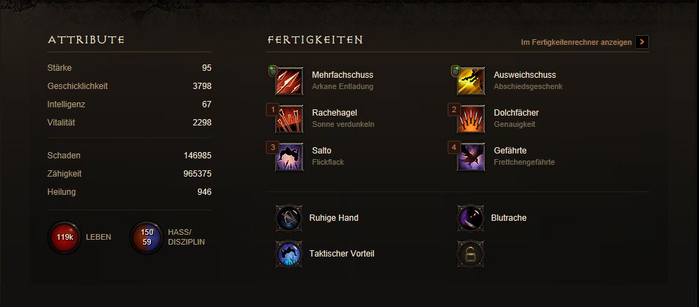 xthbx schrieb:wenn ich man mal wieder den DH ein bisschen spielen möchte, welche Skillung ist für den im Moment am besten?