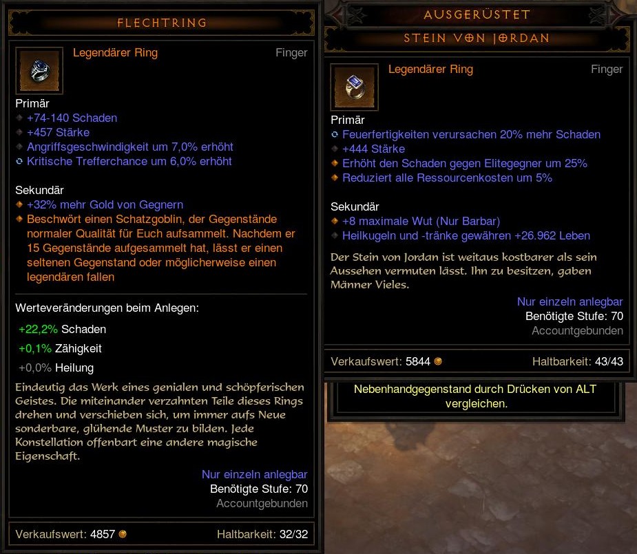 Was willst da für nen Ratschlag? Macht der Jordan 20% weniger Damage als der Flechtring? Wenn nicht, isser selbst gegen Trash Mobs besser. Und gegen Elite wohl sowieso. Denke auch nicht, dass sich die läppischen 7 IAS gegen 15 % Elite Damage lohnen. Wenns wenigstens nen Andarils mit Firedamage wäre, aber so??