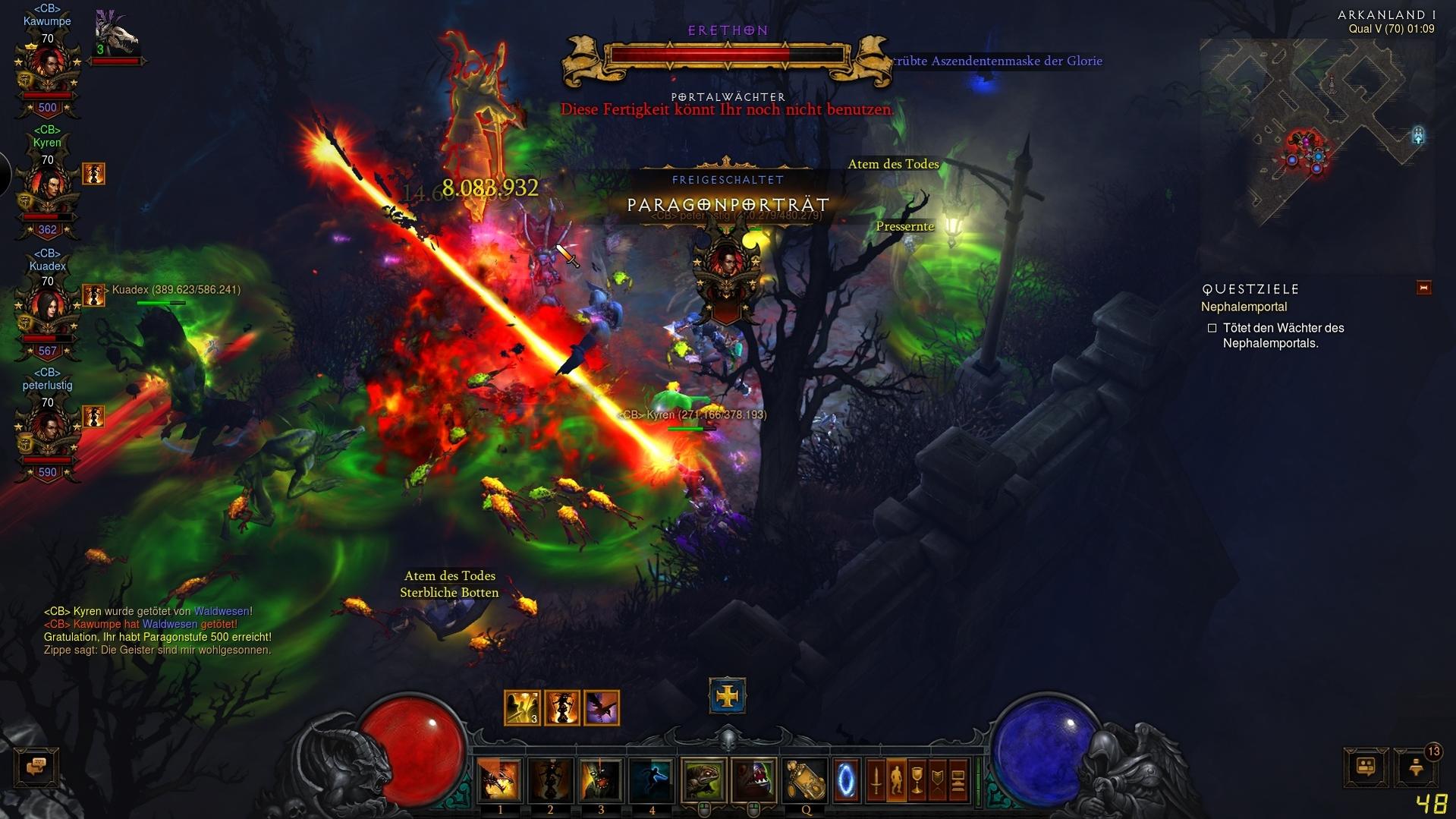 - Einen Test mal mit Death Blossom bei Arkanflut. Hatte das zu Arkanzeiten mal gespielt und hatte den Eindruck das macht ordentlich Schaden auch wenn man nicht steuern kann wo die Geschosse einschlagen.