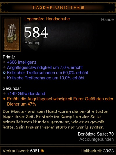Begleiter als Ablage sind gefährlich. Wenn man chars löscht, vergisst man die Begleiter ganz gerne mal, wenn man das Zeug vom char in die Truhe schmeißt. Da würd ich zur Sicherheit nix besonders gutes drauf liegen lassen.