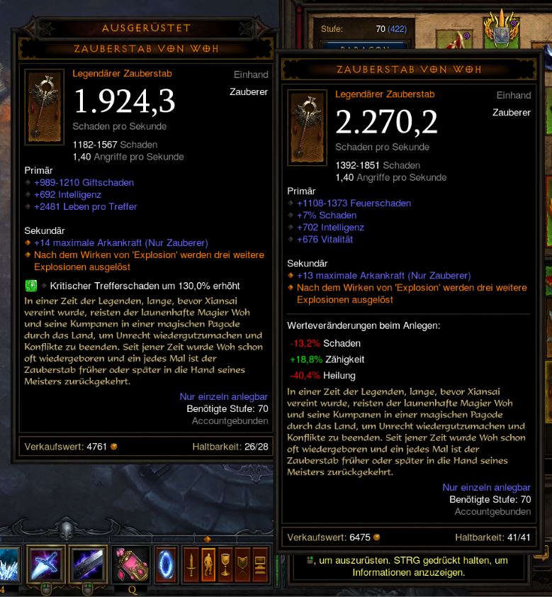 ich war eben am testen mit der woh t2 akt1lieblingslevel höhlen von ... hab da nen e umgehauen und was soll ich sagen...