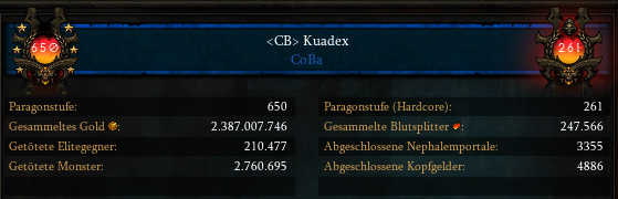 Endlich hat mein Crusader das Akkhans-Set voll. Die Schultern hat Kadala bei den letzten Blutsplittern rausgetan. Dauerchamp ist zwar noch nicht möglich, aber ich arbeite daran. Muss erstmal sehen, welche Zeit ich überbrücken muß. Habe direkt nach Erhalt der Schultern ausgeloggt.