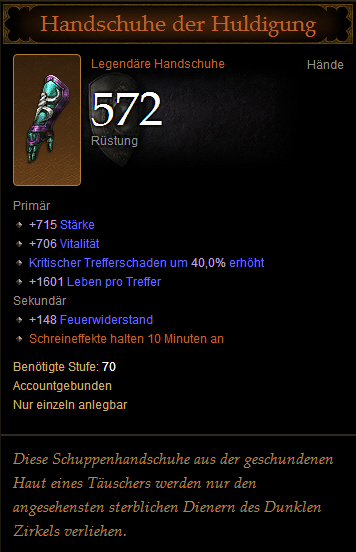 Handschuhe der Huldigung, zu finden nur im Horadrim-Würfelchen aus Akt 2!