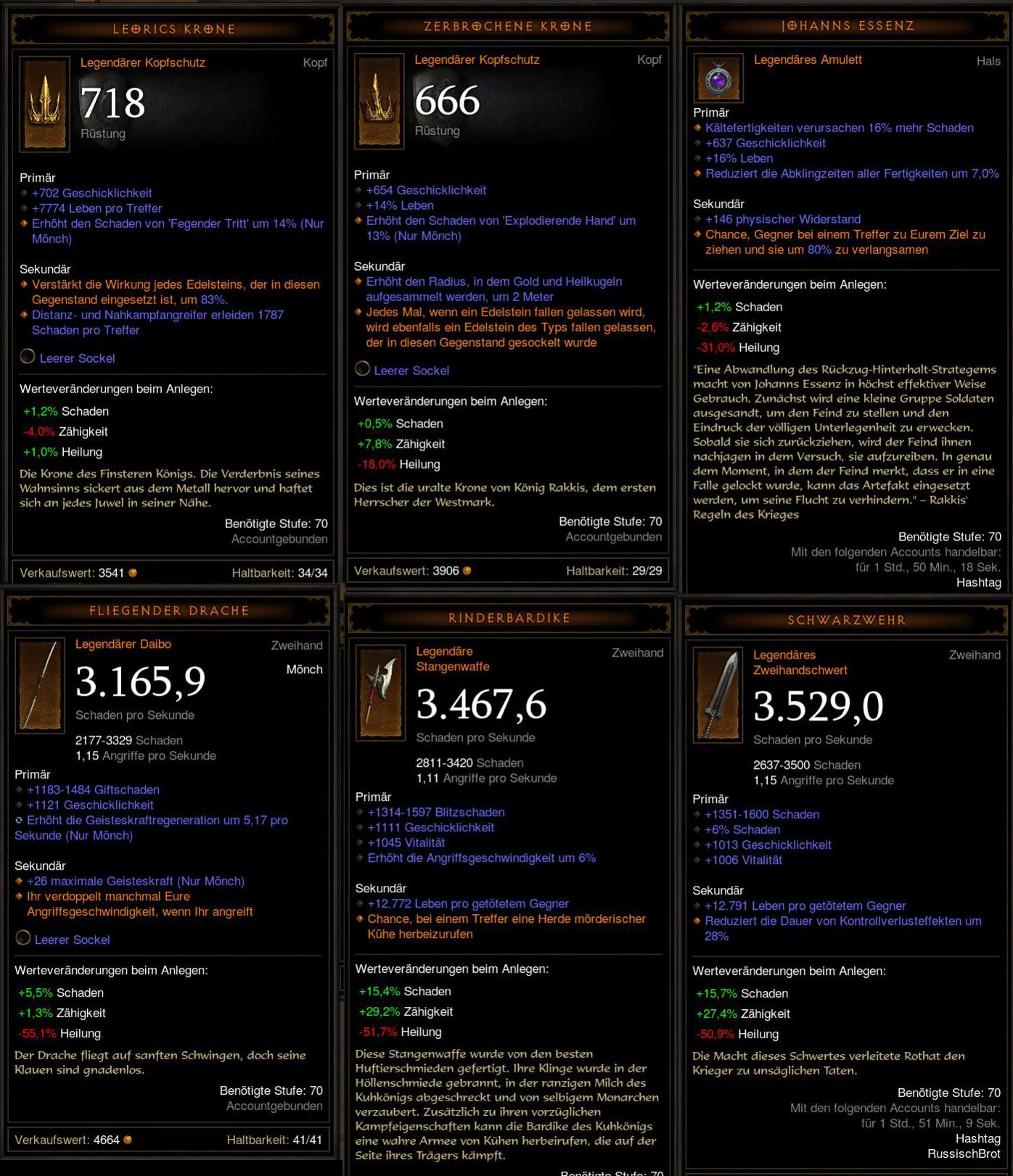 Nultsch schrieb:@alte Items: Könnt ihr mal bitte ein Item posten das aktuell wirklich noch besser ist als lvl 70 Legendary Items? Ich kann mir nicht vorstellen, das es noch Items mit lvl 60 gibt die dann sogar mit den Stats von Ancient Items mithalten sollen. Blizzard sorgt doch normal immer dafür das regelmäßig alle Items in Müll müssen, weil es einfach eine bessere Itemgruppe gibt.