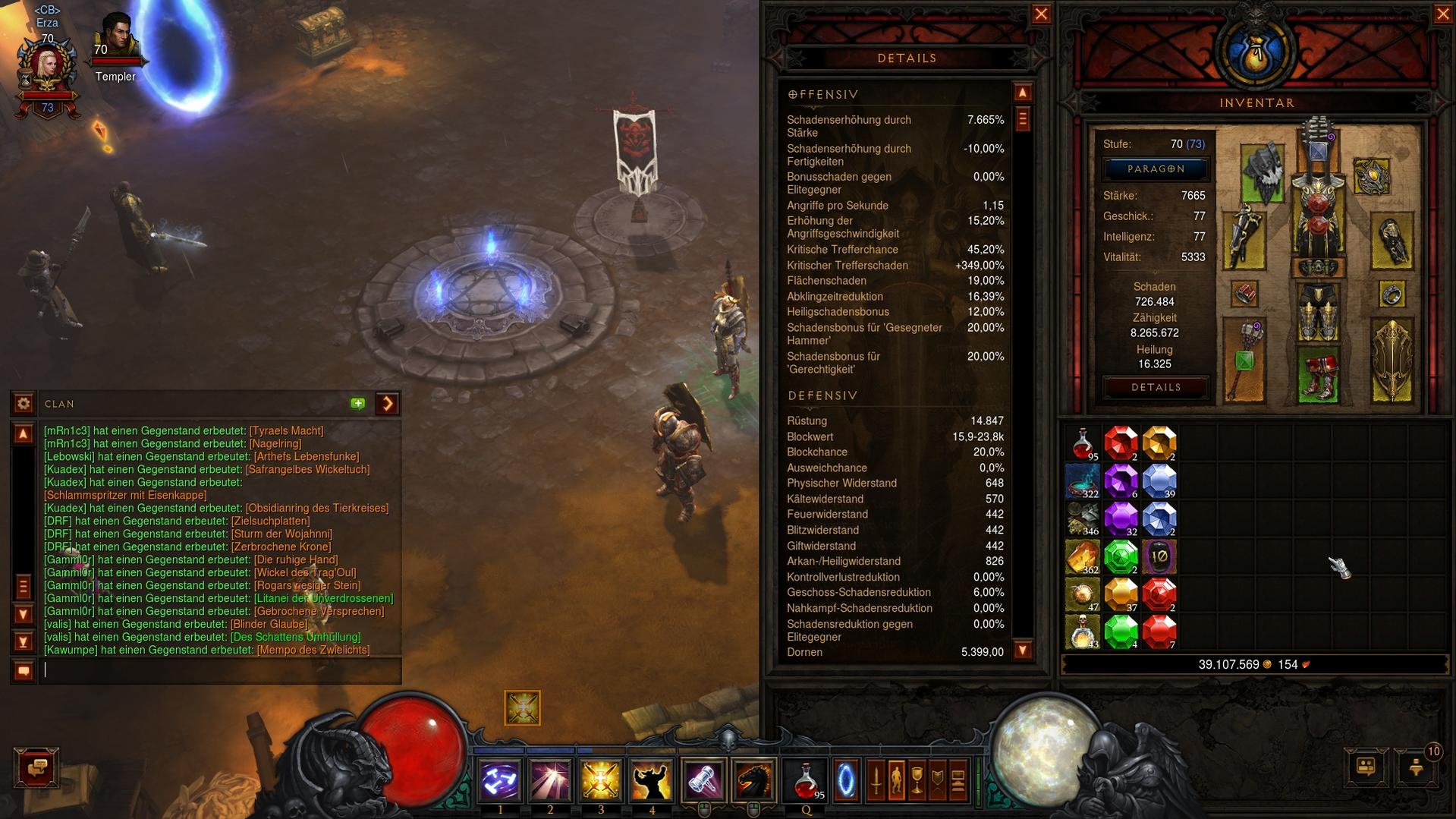 Hier mal mein Crusader nach 4 Tagen farmen und bisschen experimentieren. Was für Werte sind denn heute erstrebenswert bzw. was für ein Verhältnis? Finde meine Resis recht gering, kippe aber bis T3 eigentlich nie aus den Latschen egal wo ich stehen bleibe. An Items habe ich noch einiges in der Kiste, leider fehlen mir Seelen um die letzte passende Eigenschaft zu craften...