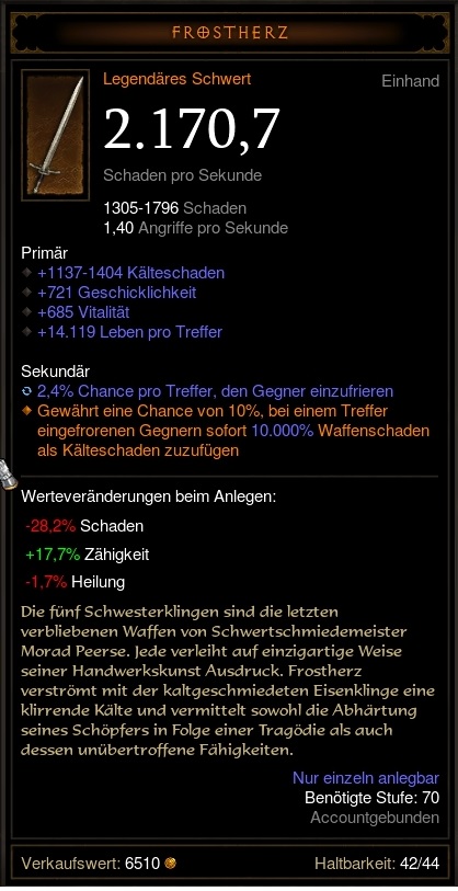 Der funktioniert in meinen Augen noch besser. Der DoT ist nicht das Killer-Affix, aber ganz nett; das sekundäre Affix ist