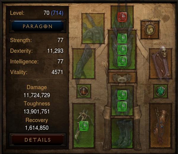 Aber der Schaden geht aktuell ganz gut 60% CC und 410%CD. 38% Feuer- und 8%EliteDmg sind auf jeden Fall noch ausbaufähig.