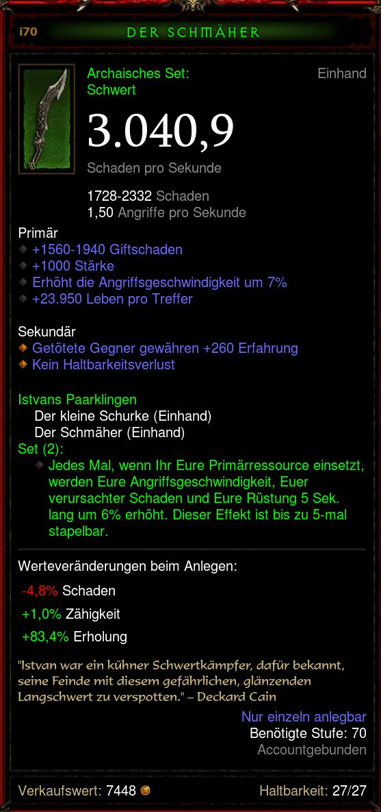 danke nochmal für den hinweis auf den link, den hatte ich ja schon von dir und hab auch anhand dessen den build aufgebaut. rache und karleis spitze sowie aufspießen sind eh klar... verwunderlich finde ich allerdings auf der seite den hinweis, dass hass(versorgung) ja sowieso kein problem darstellt.