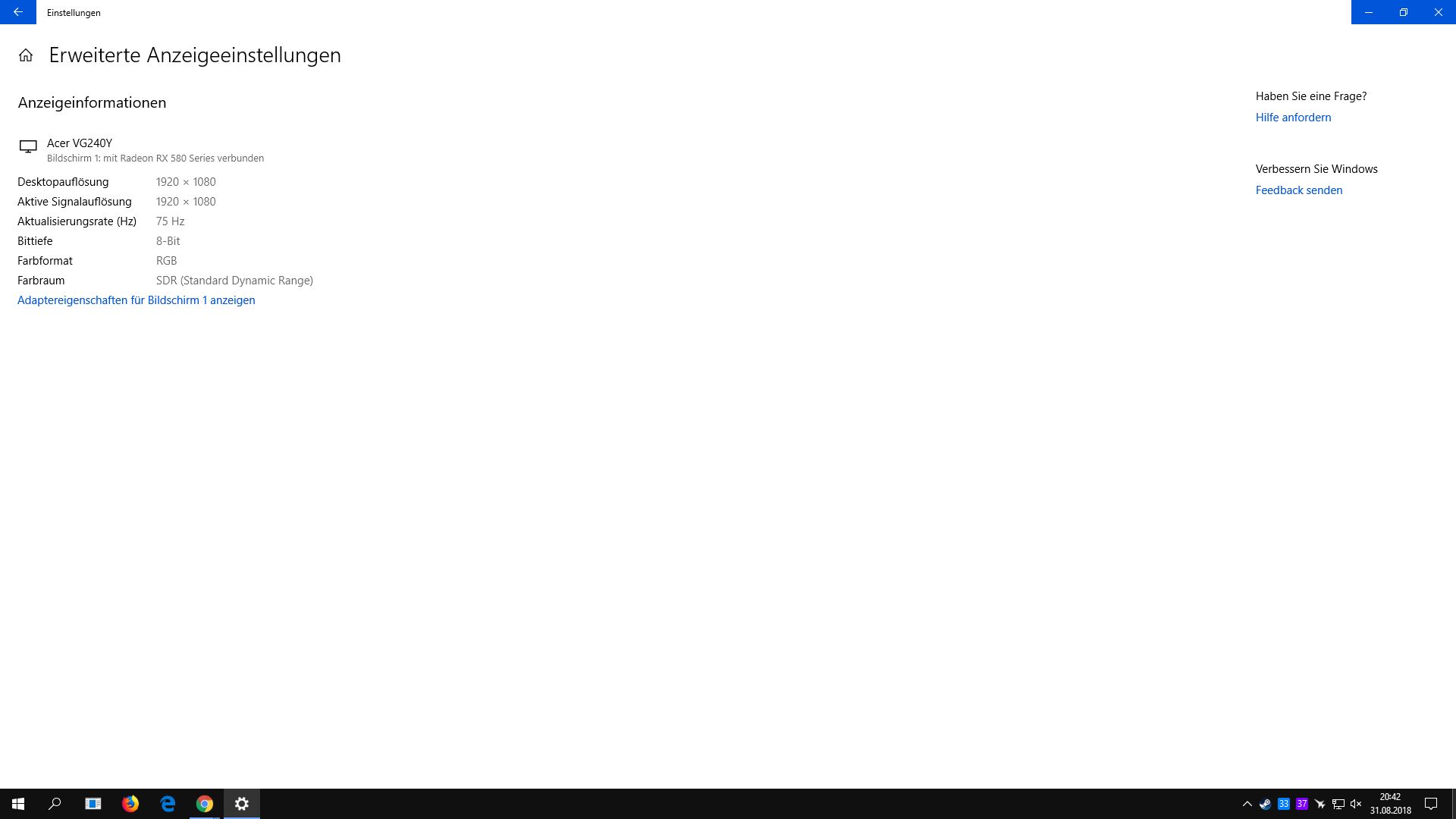 Okay muss den Thread noch mal holen, hab mir nun ein DP 1.2 (dieses https://www.saturn.de/de/product/_digitus-displayport-2285999.html ) ... angeschlossen und unter DisplayInformationen direkt bei den Monitor steht immernoch 1920x1080 @60hz. Muss man für 75 noch was anderes "umstellen" ? Liegt es am 2. Monitor der auch am PC angeschlossen ist (der nur 60hz hat) ?