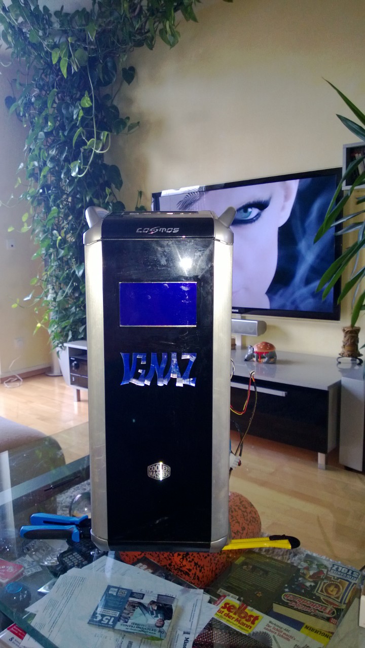 Irgendwann hinterher die optionale TĂŒr mit Plexiglas gekauft und dort Löcher reingebohrt, damit 2x 120mm LĂŒfter dran können aus Verzweiflung.