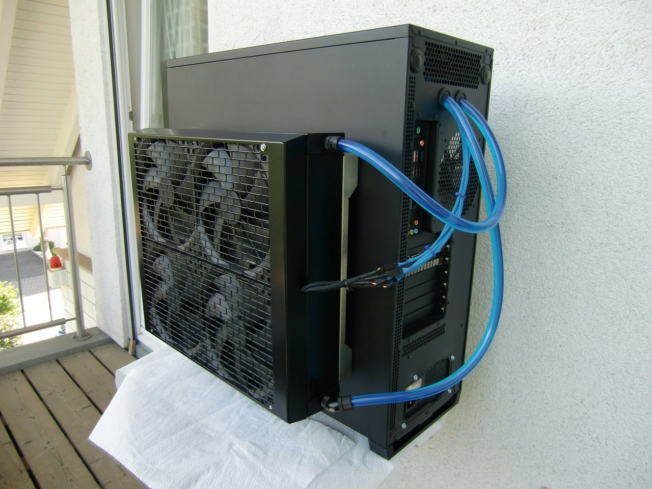 Die Wakü ist bei mir von Anfang an Extern installiert worden.