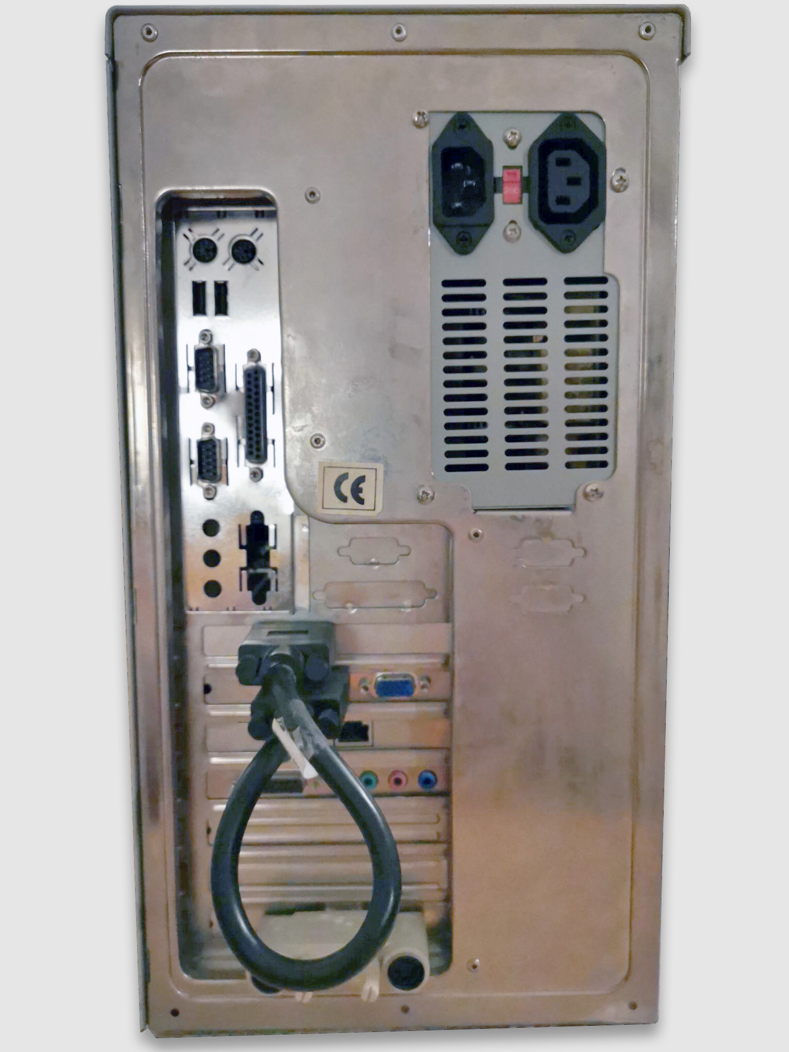 1995: Vobis Highscreen Pentium 90. Dürfte höchstwahrscheinlich noch ein AT-Netzteil sein. Die Unterseite des Netzteils hat jedenfalls keine Lüftungsschlitze, wenn ich das auf dem Foto richtig erkenne.