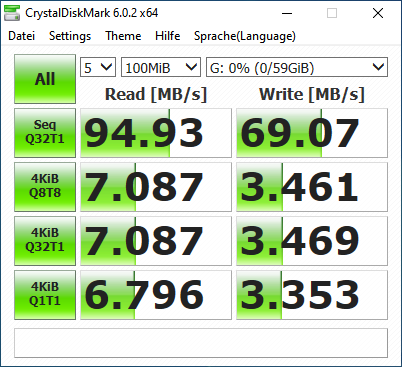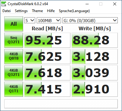 Meiner Erinnerung nach dürfte der Stick bei größeren Datenmengen noch deutlich einbrechen.
