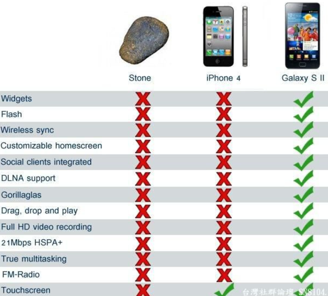 Achja herrlich, die elend langen Featurelisten, die damals wie heute voll mit Zeug waren, was keiner brauchte. Damals wie heute sehe ich fast niemanden aktiv Widgets nutzen, den Homescreen massiv anpassen (vom Hintergrundbild und App-Anordnung abgesehen, und das ging auch schon auf einem 4er) oder multitasken.Nadja... schrieb:Deshalb entstanden auch Parodien wie im folgenden Bild und die bis heute anhaltende Behauptung, dass Apple Fans "keine Ahnung" haben und wie Schafe nur das Marketing wiederholen, ohne es mit den Fakten abzugleichen.