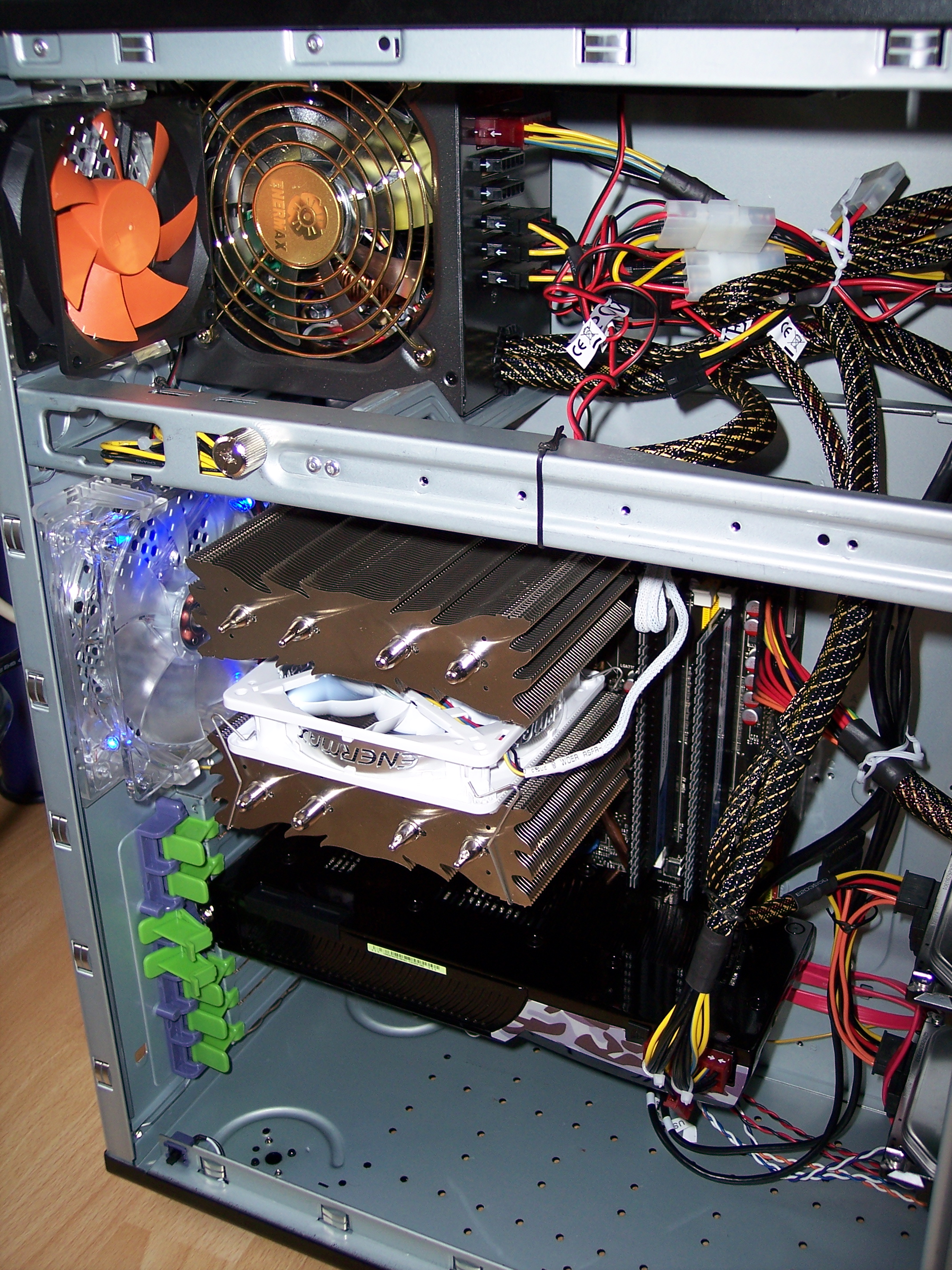 Dann habe ich noch einen alten Gehäuselüfter auf die andere Seite geschnalt(auch 1200 rpm) und das hat die Temperatur auf 73°C gesenkt.