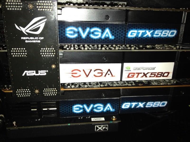 Diese wiederum wurden später durch eine einzelne GTX 580 Lightning mit 3GB ersetzt. Diese lief stabile 1015MHz und in Benchs 1080+Mhz auf dem Core.