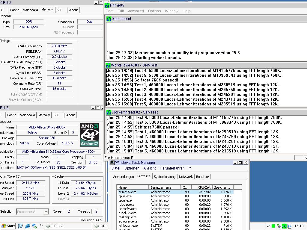 Prozessor war noch vor des offiziellen releases ein Athlon 64 3000+ Winchester 90nm @ 2300MHZ, später dann aufgerüstet auf einen Athlon 64 X2 4800+ Toledo @1,45V bei 3000MHZ und dann im Fileserver @ 2400MHZ @ 1,085V. Die cpu existiert übrigens noch heute. Kurzzeitig hatte ich noch einen Opteron 190 (richtig 190 @2800MHZ), welchen ich aber dann auch wieder verkauft habe.