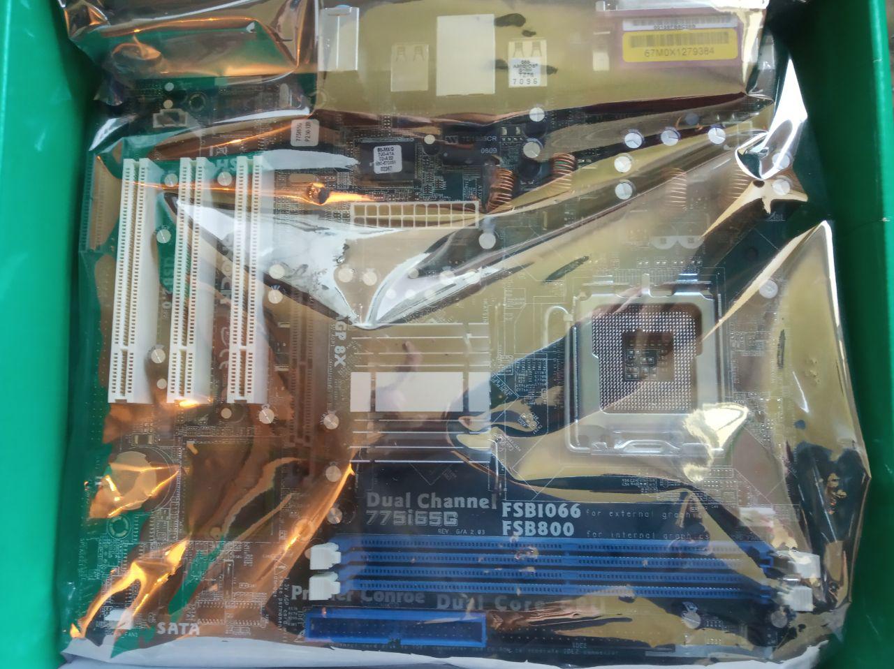 Hier mal kurz aus dem Schrank geholte Board mit dem erwähnten Chipsatz 915. Keine Ahnung welche CPU drin steckt. Mit nem Zalman drauf :-)