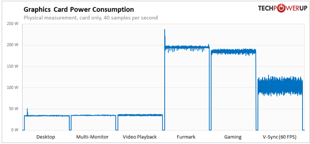 Ich kenne die Charts und weiß was die Karten ziehen kann, im Alltag bzw. normalen Gaming-Betrieb kommt sie allerdings selten in diese Bereiche und liegt eher immer um die +-140-160W beim Gaming, die 200W sind echt nicht die Norm.