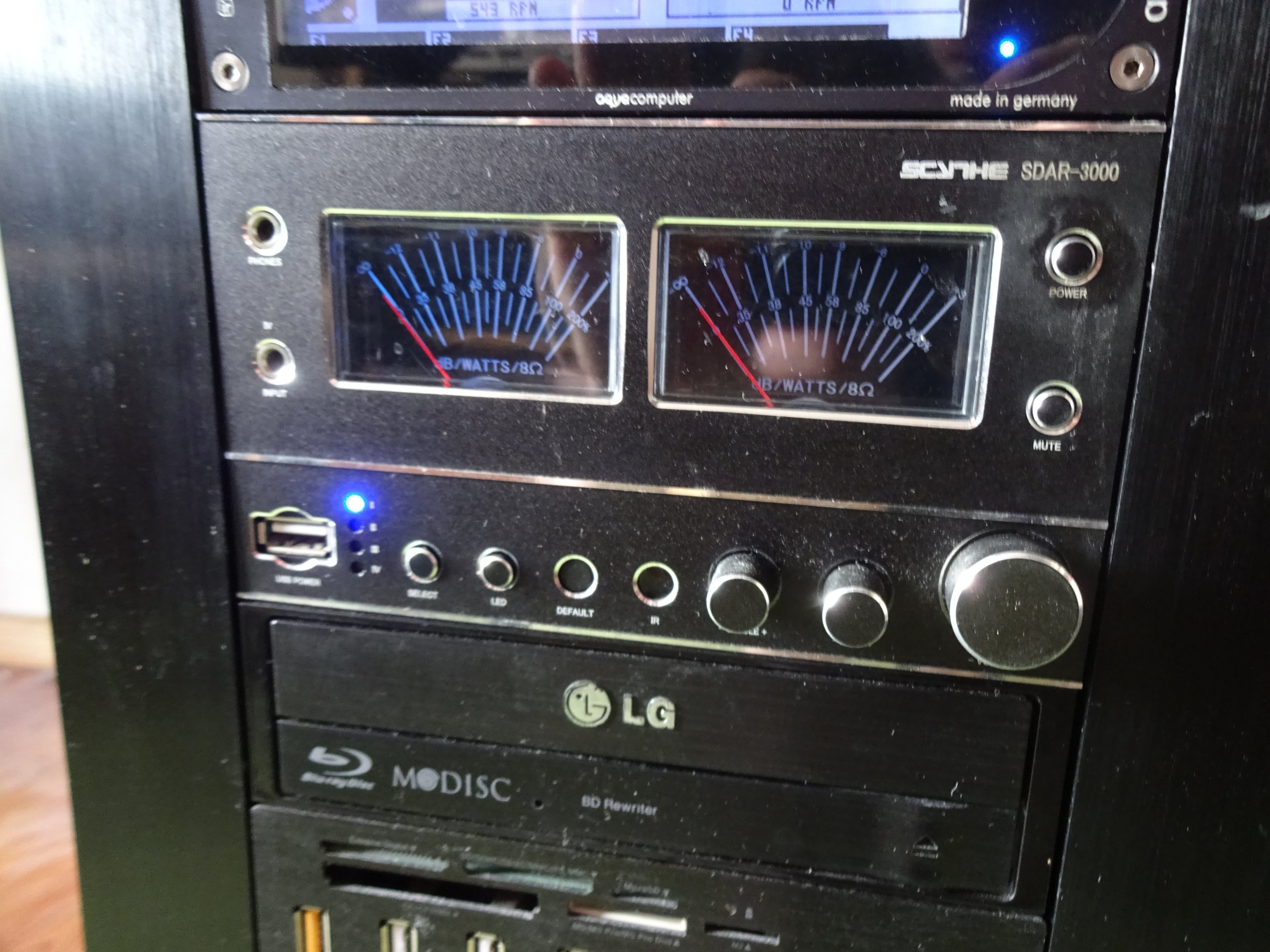 Ja, das ist/war ein Corsair 800D (mittlerweile stark umgebaut) und mein Ziel war damals wirklich, alle 5,25"-Schächte zu belegen. Was kommt da gelegener als ein Audio-Verstärker mit zwei Höheneinheiten?