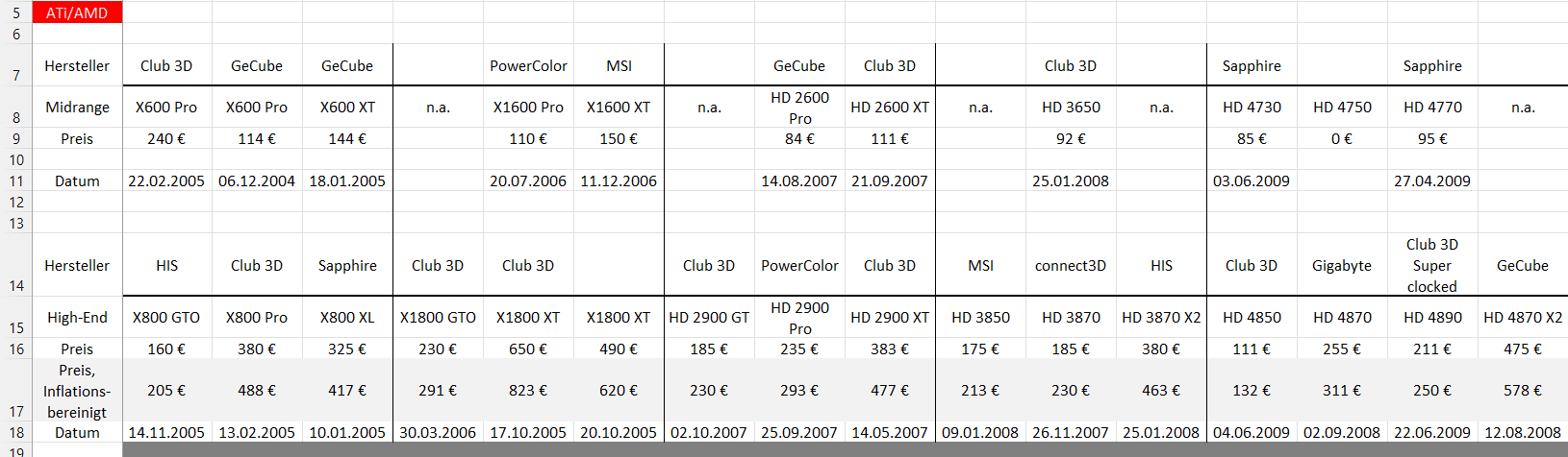 Die nVidia Preise sind leider ohne Inflation (Interesse war zu gering, das sich der Aufwand gelohnt hätte):