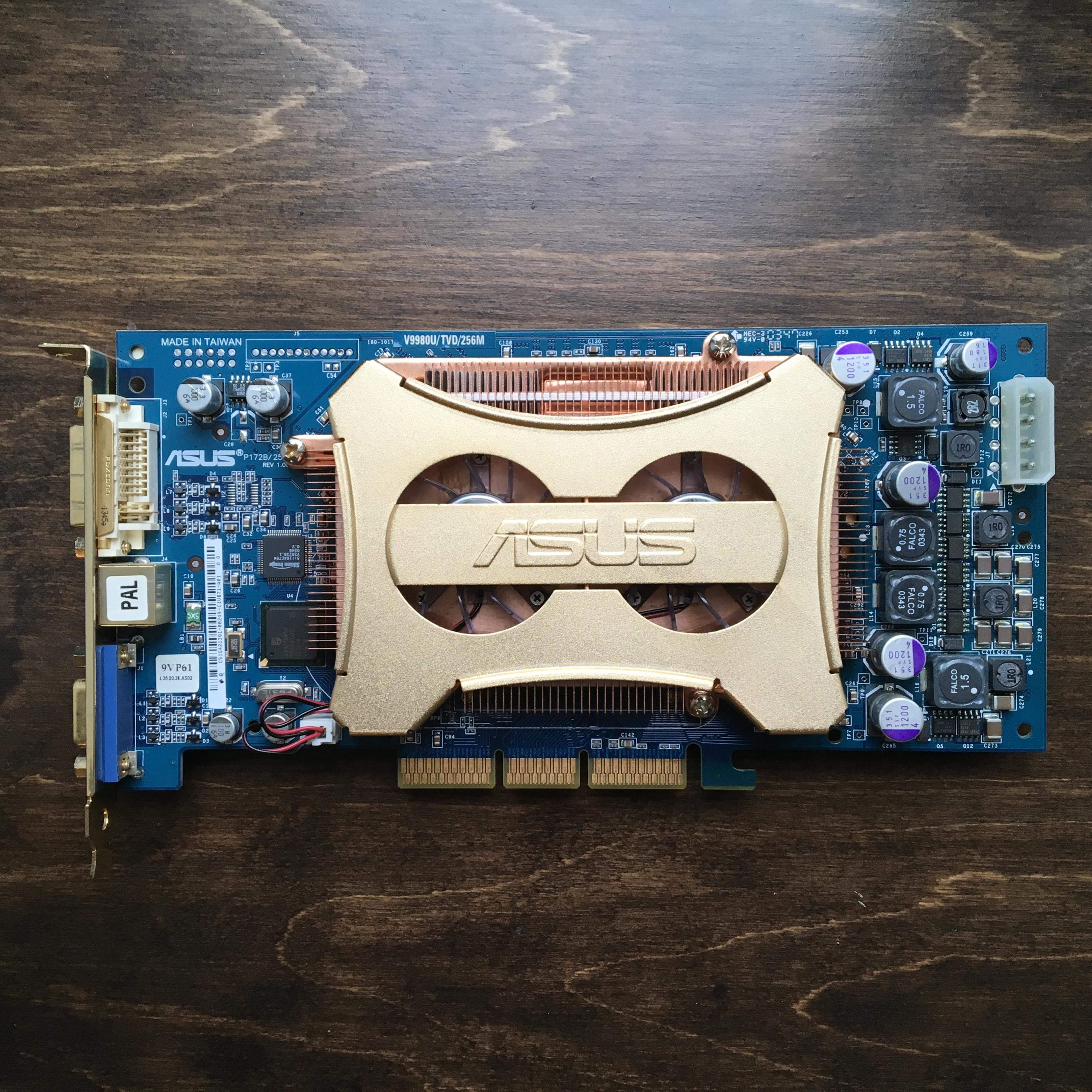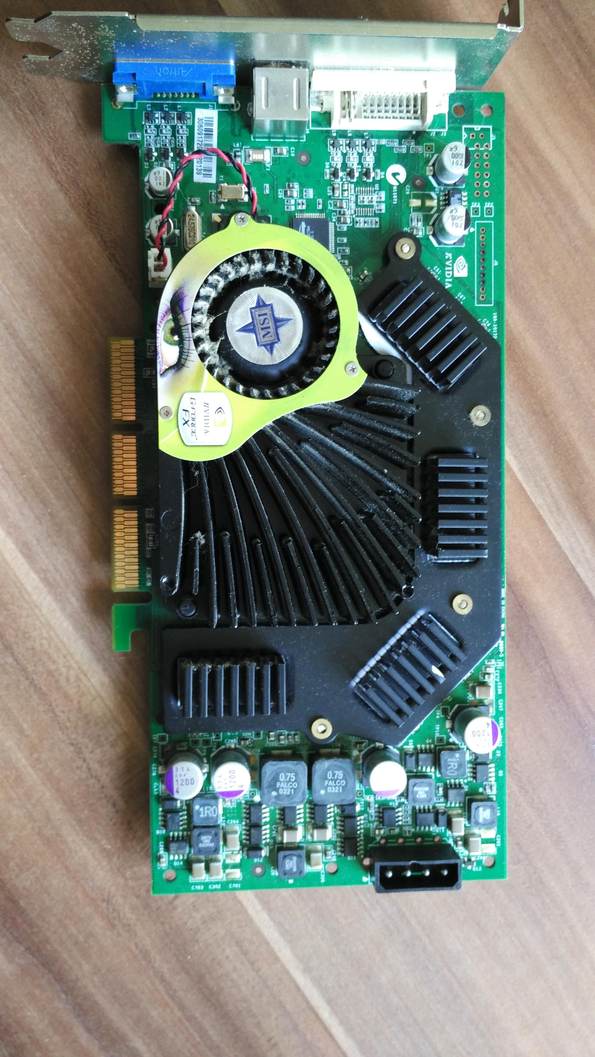 Heute habe ich (neben diversen anderen Grafikkarten) noch zwei FX 5950 (ASUS V 9980 Ultra) und das ATI Gegenstück (9800 XT aka ASUS A9800XT). Die FX Karten haben ein bestimmtes Hardware Feature (Shadow Buffer), das es in den nachfolgenden Generationen nicht mehr gab. Ich hab 5950 Ultra nur noch wegen Splinter Cell 1 und 2 für die Retro Kiste
