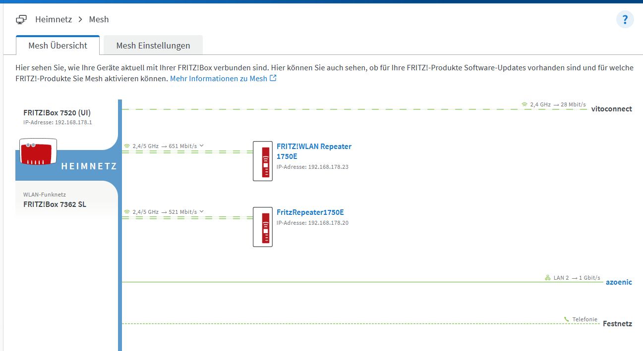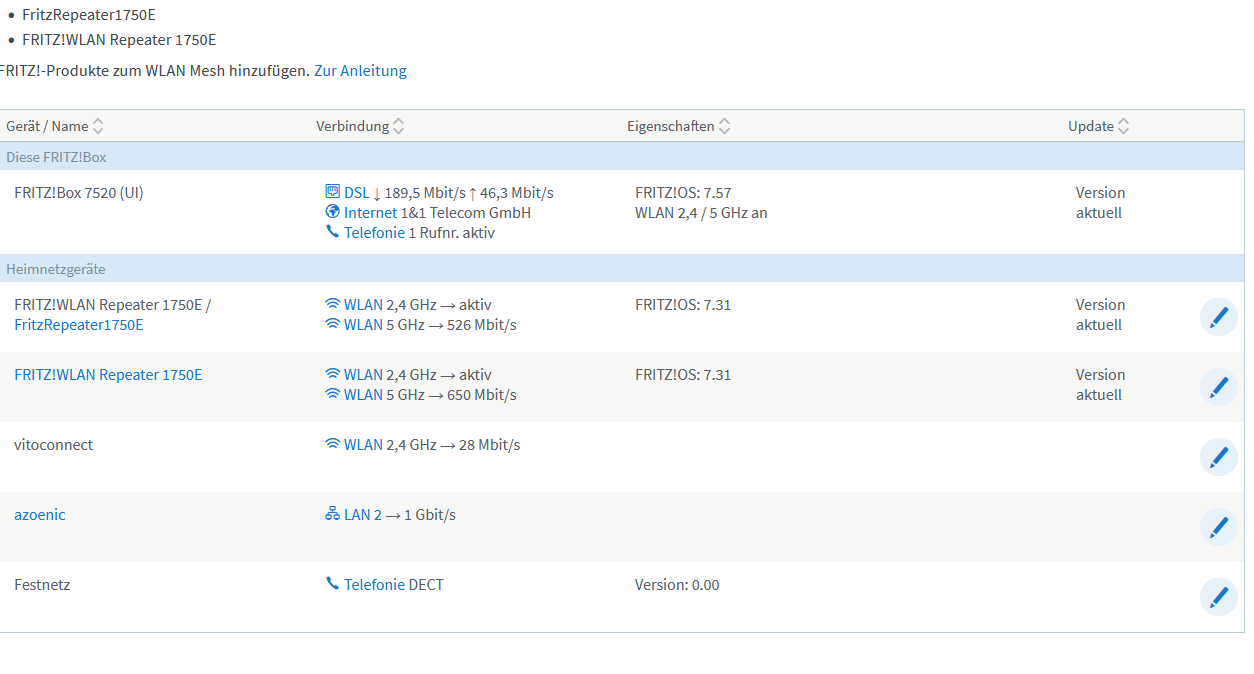 Wenn ich das Gerät per Netzwerkkabel am Router oder am Repeater einstecke ist dies alles möglich.