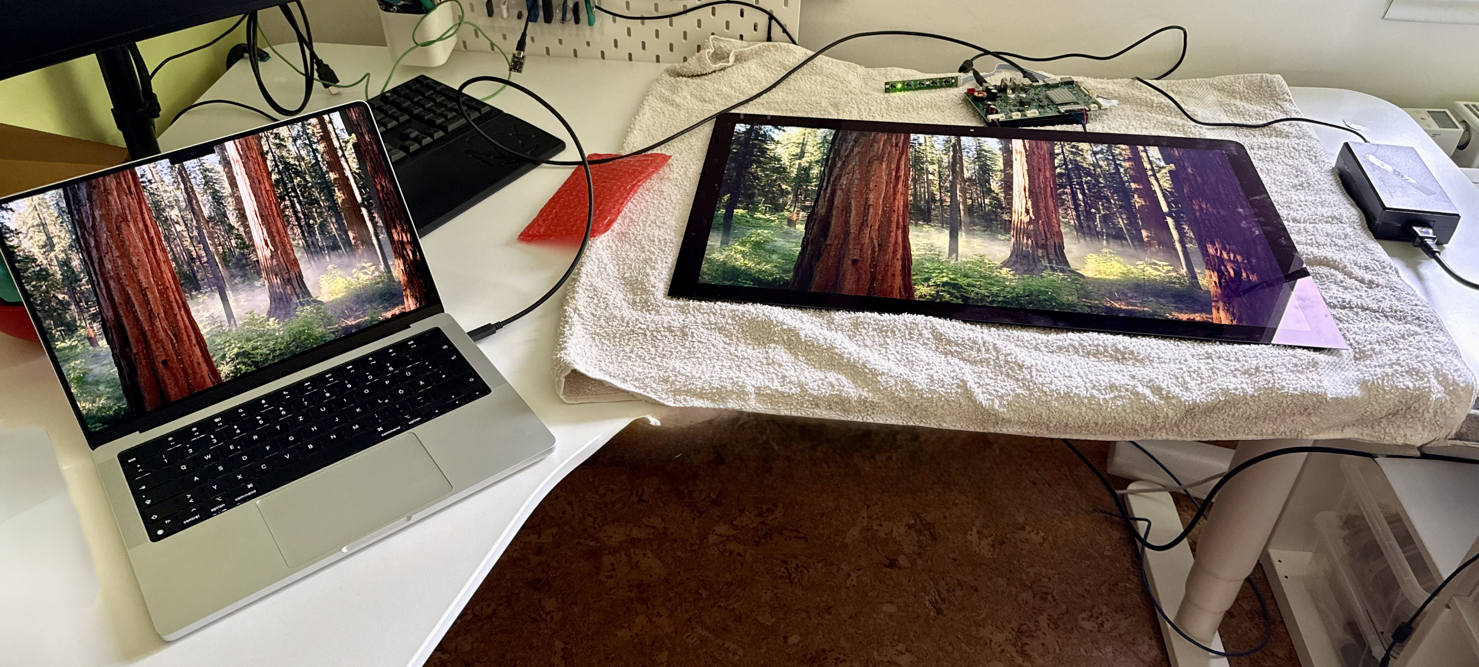 ich möchte einen alten iMac 5k von 2017 zu einem externen Monitor mit einem JRY-W9CUHD-AA1 Board umbauen. Offen auf dem Schreibtisch hat auch alles funktioniert, bis ich probiert habe alles in das Gehäuse einzubauen. Seitdem wird das Bild doppelt so breit angezeigt (wenn das Board an einem MBP per HDMI hängt) oder das Bild läuft vertikal durch (MBP per USB-C oder T460s per HDMI).