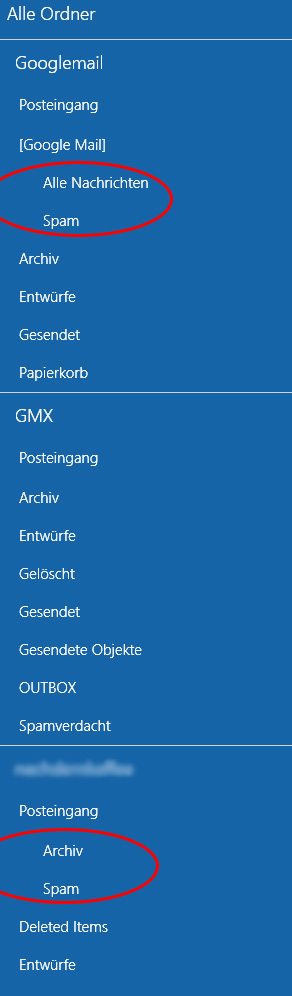 Auch die Anordnung von "Archiv" und "Spam" unterhalb von "Posteingang" mutet seltsam an.