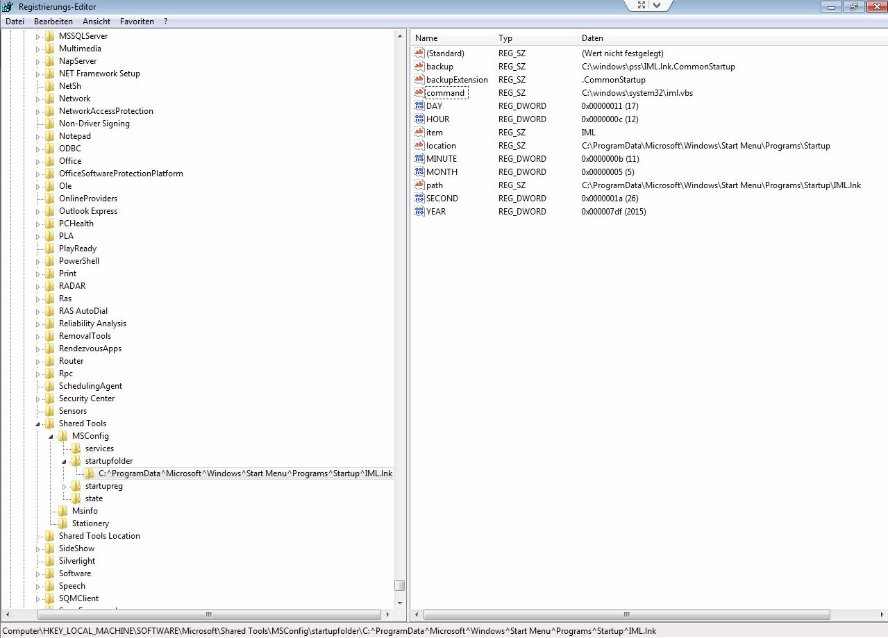 Die iml.vbs sitzt im system32 Ordner von Windows, nur dort kann ich Sie finden. Aber löschen geht nicht, es stellt sich sofort selbst wieder her und setzt sich auch wieder in Autostart.