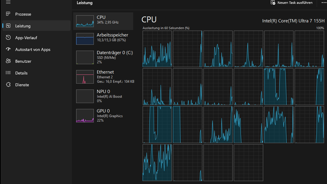 Aus irgendeinem Grund geht mein Firefox auf dieser Seite auf 8% CPU Auslastung, aber alles auf den 3 Kernen