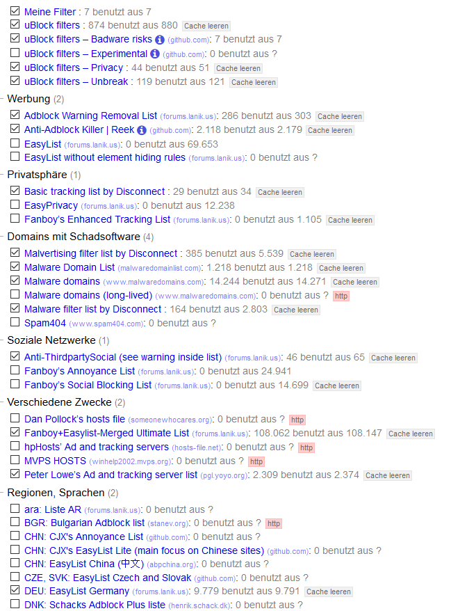 Dabei liegt es nicht daran, daß mein Anbieter bestimmte Werbung freischaltetet. Ich benutze µBlock, die meines Wissens keine solchen Verträge mit der Nerv-Industrie haben, wie Adblock Plus.. Allerdings sind die Einstellungen in den Filterlisten dort sehr vielfältig, und es ist mir bereits einmal gelungen, auch nützliche Inhalte auszublenden. Kennt jemand passende Filterlisten oder auch neue Tools, die die neue virenhafte Werbung zuverlässig blockt?