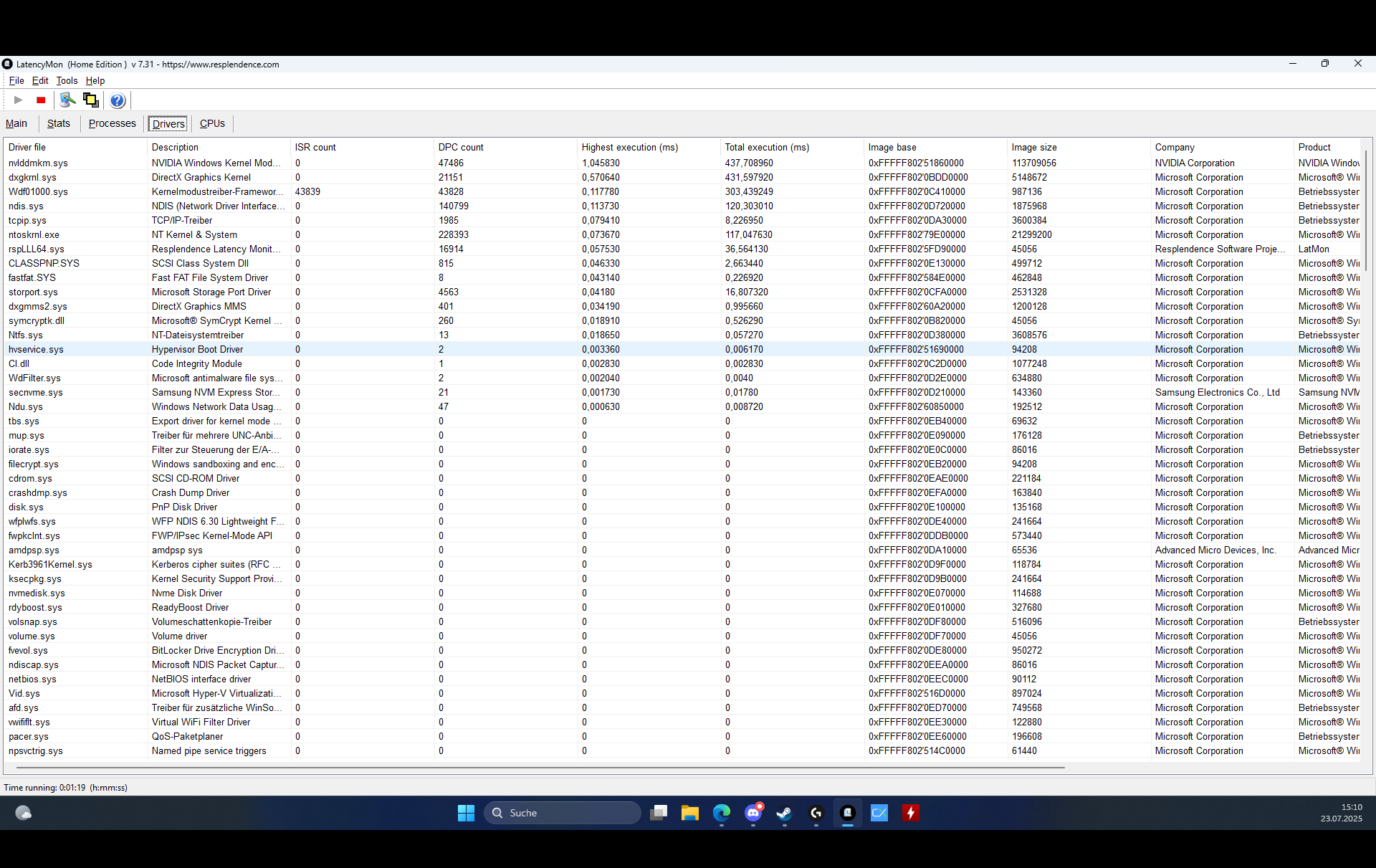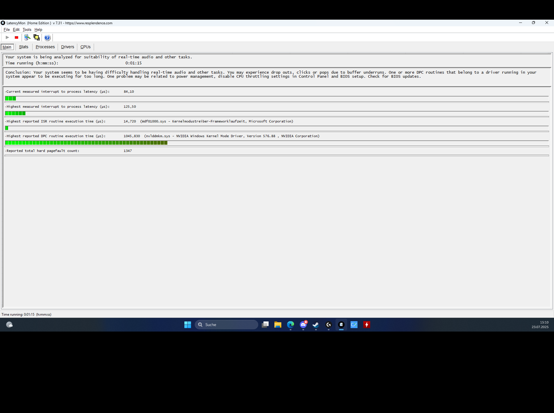 Wertve von LatencyMon keine 2 Minuten läuft das Programm und schon ist die Latenz sehr hoch .