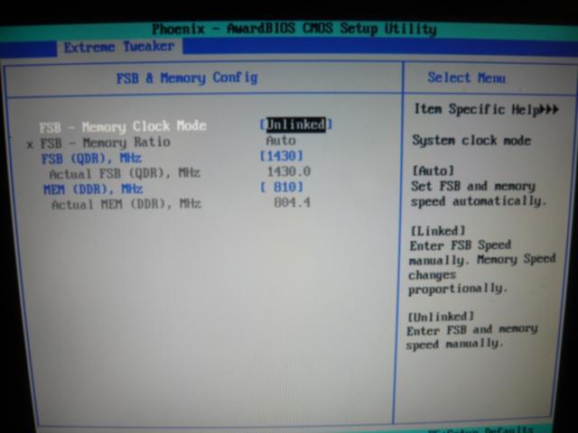Habe DDR auf 800 gestellt, jetzt zeigt mir das CPU-Z DRAM Frequency 397,4 MHz, aktuell habe ich FSB bei 1430 Mhz, also 2,68Gz. Was soll ich jetzt tun? Um wieviel FSB erhöhen?