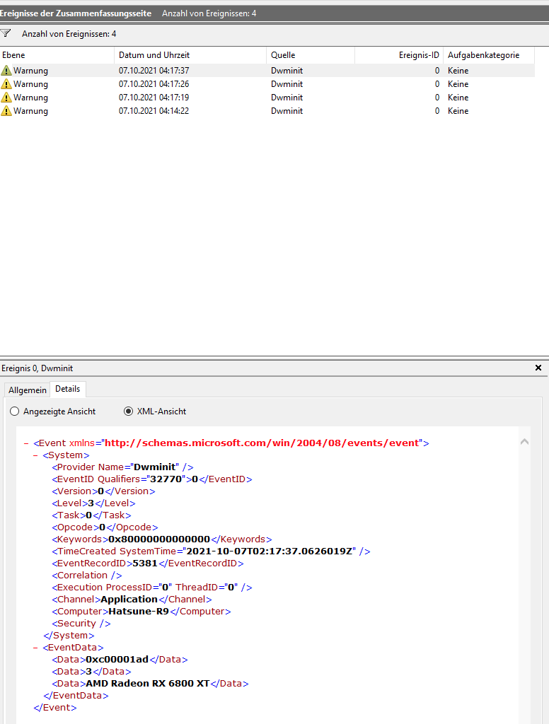Die Probleme fingen kurz nach dem einbau der 6800XT an welche eine RTX 2070s ersetzte.