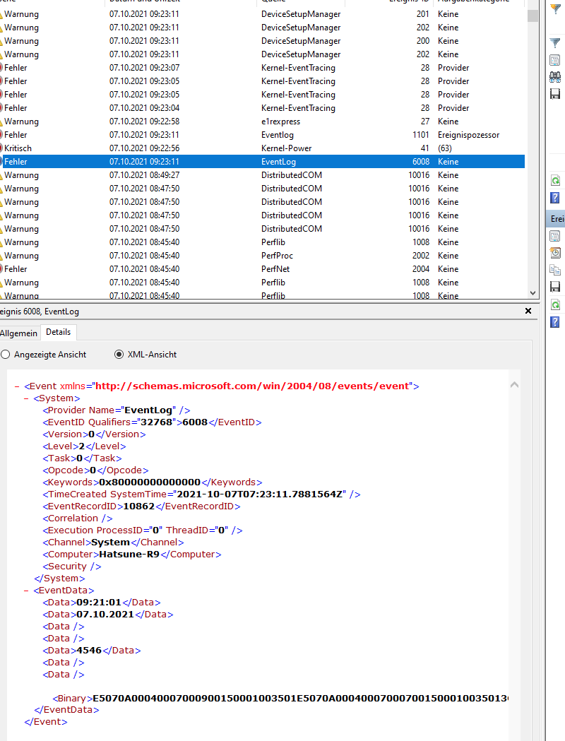 Das letzte Bild zeit das letzte Ereignis vor dem Shutdown und da ist ansosnten auch nichts auffälliges in meinen augen.