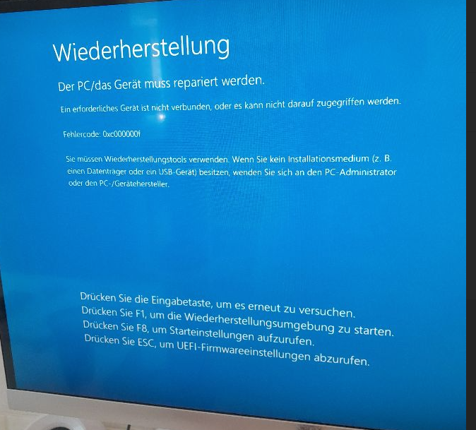 den Fehlercode: 0xc00000f - Bluesceen anzeigt.