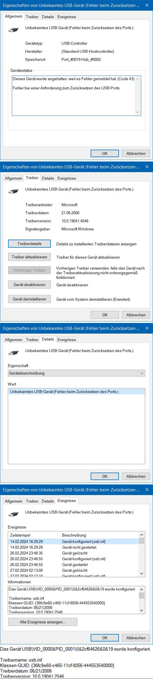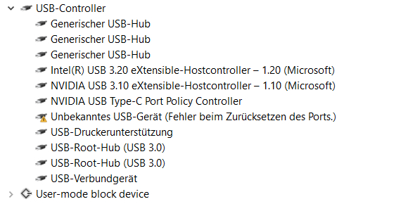 Ich habe die Chipsatztreiber erneuert und anhand einer Anleitung (Link) alles durchprobiert. Keine Besserung. Die Fehlermeldung (der Port) lässt sich provlemlos deinstallieren, aber spätestens beim nächsten Neustart ist sie wieder da. Dann habe ich die Mehrheit der USB-Anschlüsse nach und nach gezogen = Fehlermeldung immer noch da. Und ich habe keine externe Festplatte angeschlossen (sind bei mir manuell vom Netz getrennt) und trotzdem kommt jedes Mal diese Fehlermeldung wieder und auch, obwohl ich in den letzten Sessions definitiv keine zusätzlich USB-Geräte gesteckt hatte. Die Maus und die Tastatur habe ich noch nicht gezogen.
