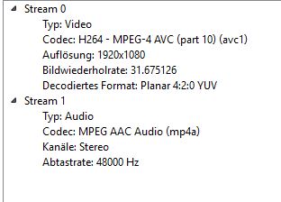 Da Premiere keine AVIs mag, zumindest nicht in dieser Kombination, habe ich mit dem TEncoder den AVI Inhalt in eine MP4 kopiert (Nur den Ton in AAC konvertiert).