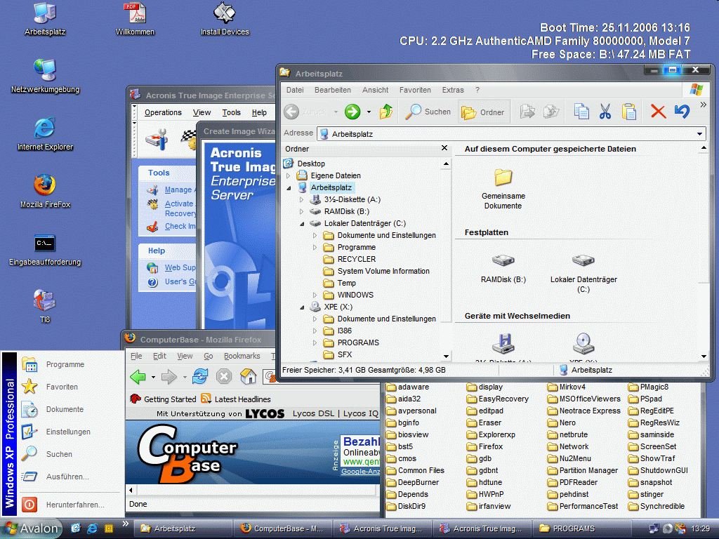 Aber ich will eine Boot-CD mit BartPE erstellen. Dak klappt ja auch alles schön und gut, aber leider hat das "ursprüngliche" BartPE keine Taskleiste.