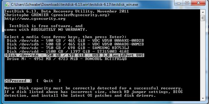 Nun hab ich mal in der FAQ nachgeschaut, dort wird beschrieben wie man mit TestDisk vorgehen soll. Dies hab ich befolgt aber nun heißt es von Windows das ich die Festplatte formatieren muss!!!??