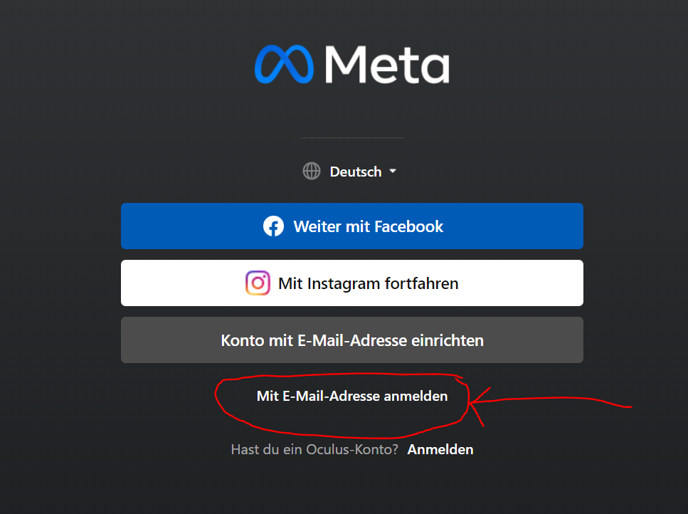 PS: wenn ich in der Oculus-App "Passwort vergessen" anklicke, werde ich aufgefordert, mein Passwort auf der Meta-Seite zu ändern.