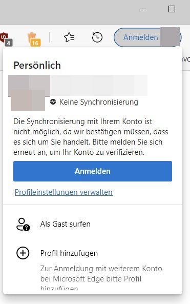 ich habe seit einiger Zeit das Problem, dass ich häufig nicht mehr bei Edge mit meinem MS-Konto angemeldet bin; und dann natürlich die Synchronisierung nicht läuft. Ich habe noch nicht feststellen können, wann genau das Problem auftritt; auf jeden Fall nicht nach schließen und öffnen des Browsers, sondern nach dem Hochfahren. Aber dann ist es auch nicht immer der Fall.
