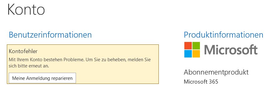 Seltener passiert es auch bei Office-Anwendungen, Outlook oder Excel. In Outlook gibt's dann einen Hinweis zu einem Kontofehler. Wenn ich dort auf reparieren klicke, muss ich auch wieder die PIN eingeben und alles scheint ok zu sein. Bis das Problem irgendwann wieder kommt.