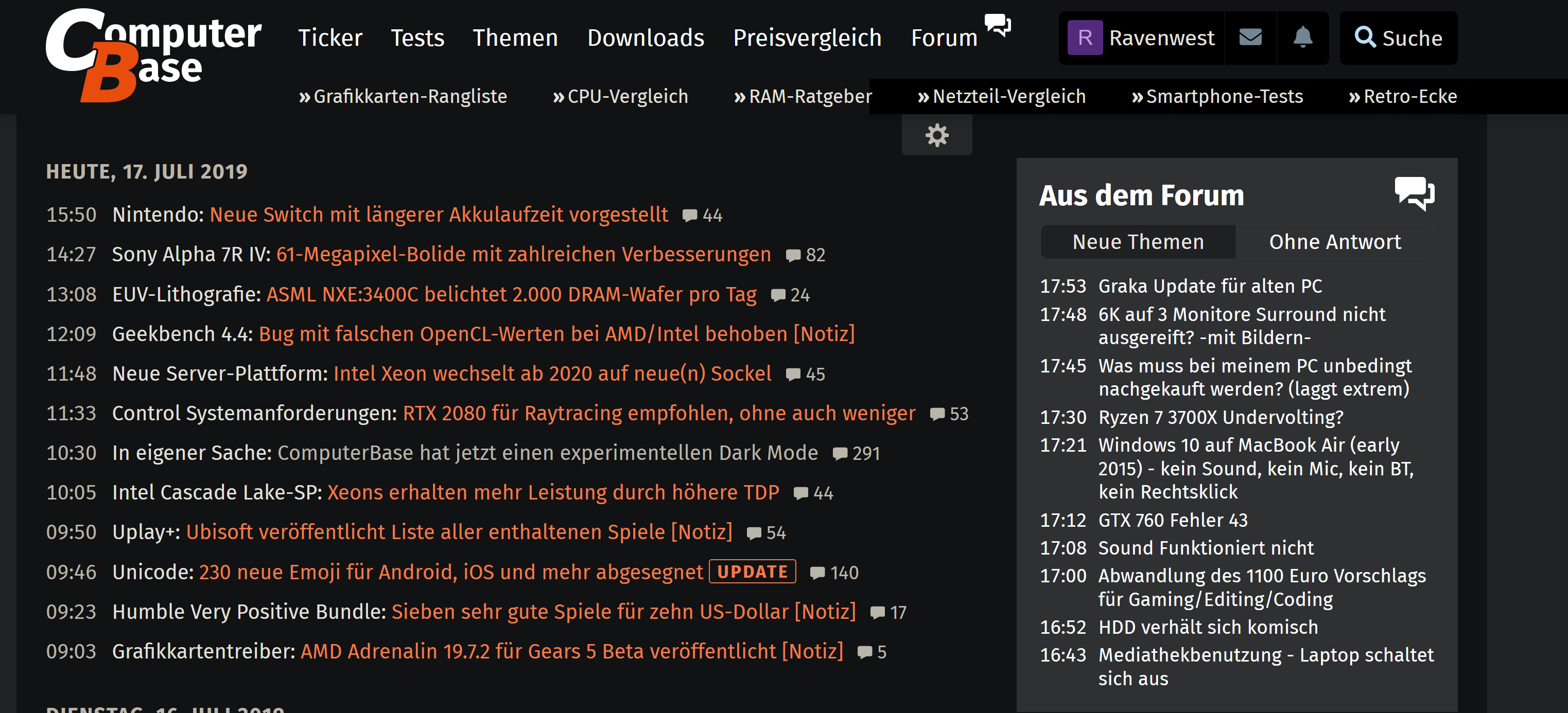 - Zur News: In eigener Sache: ComputerBase hat jetzt einen experimentellen Dark Mode