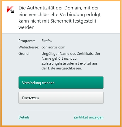 Also bei mir zeigt Kaspersky die von dir angegebene Domain an. "Webadresse:cdn.adnxs.com" Ohne Dreher, es sein denn ich hab da was falsch verstanden